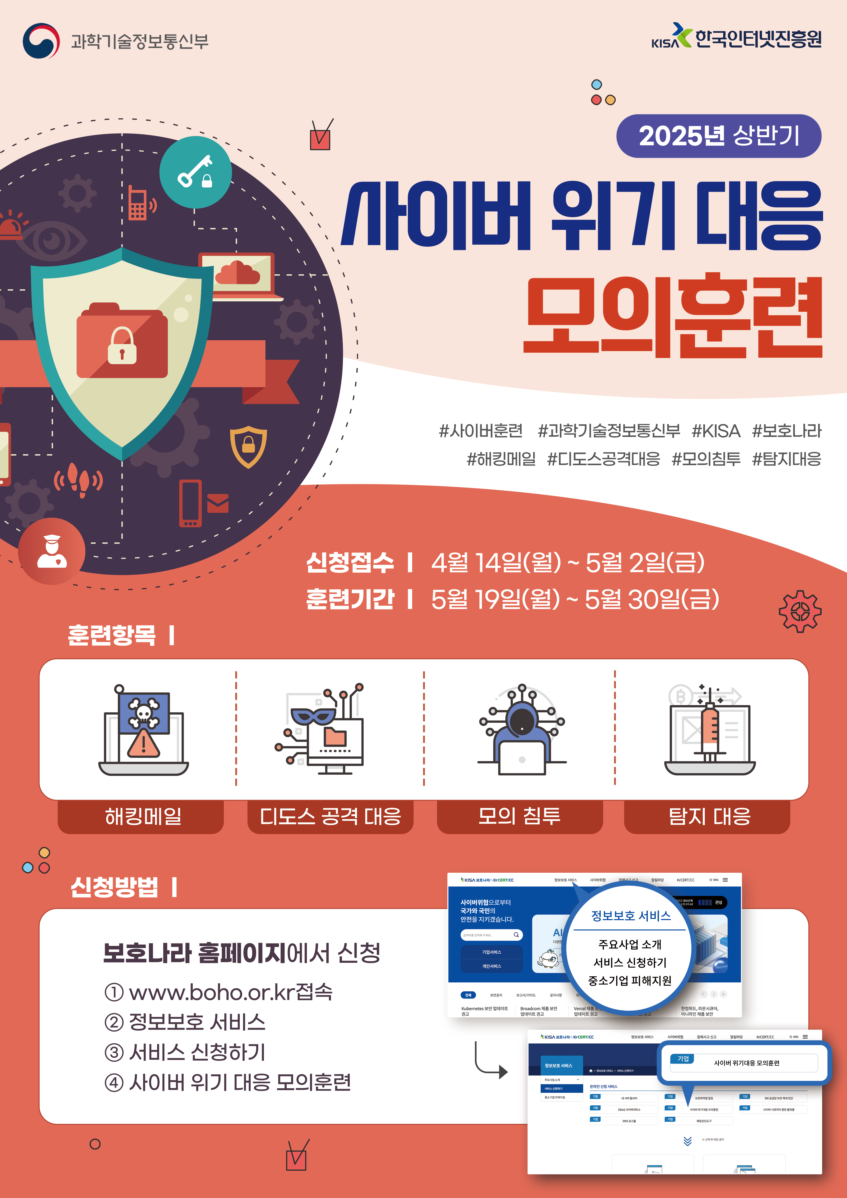 2025년 상반기 사이버 위기 대응 모의훈련을 추진합니다.